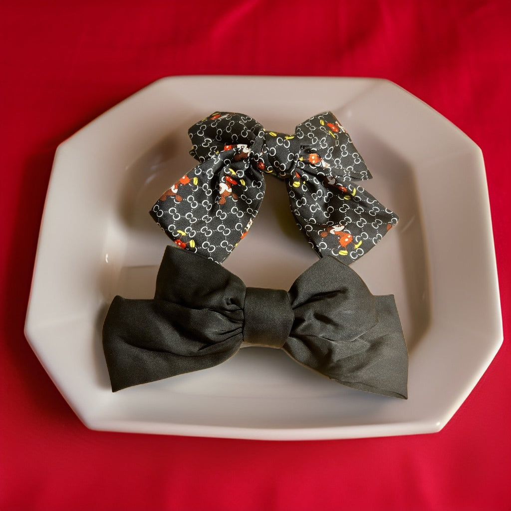 Mikkie Mouse Hair Bow Clip Set Black Mikkie + Black (Set of 2) - B13