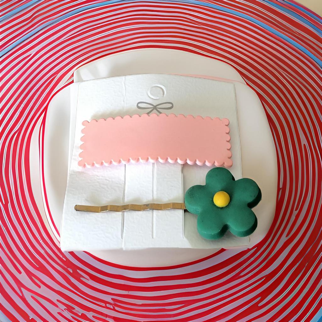 Pink Truffle Clip With Green Flower (Set of 2) - HP-42#02